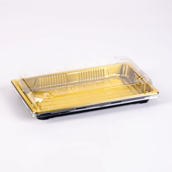 / 240*125MM GOLDEN RECT. TRAY W/CLEAR LID 264PCS سوشي مستطيل ذهبي