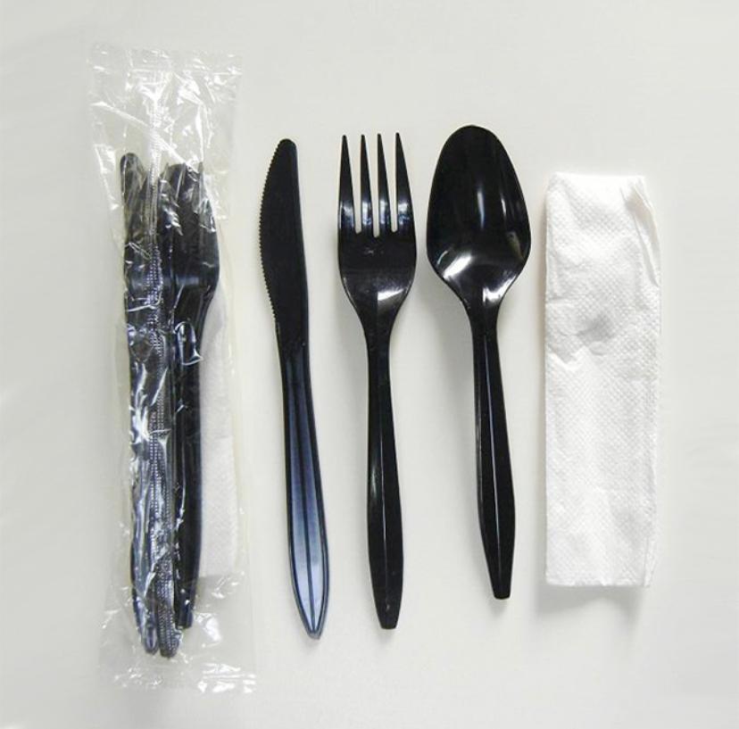 BLACK CUTLERY SET 4PCS 500BAG كاتلري اسود&معلقه & شوكة &سكين نابكن