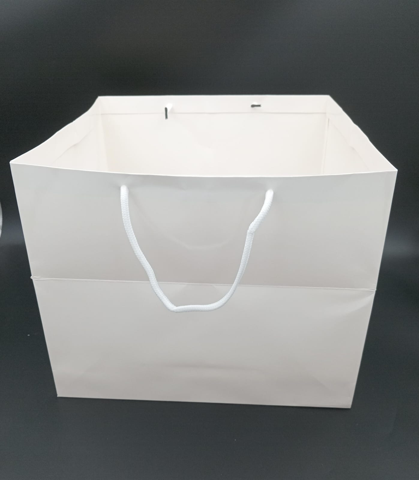 WHITE PAPER BAG W/HANDLE NO.15 50PCS اكياس كرتون وسط quantity
